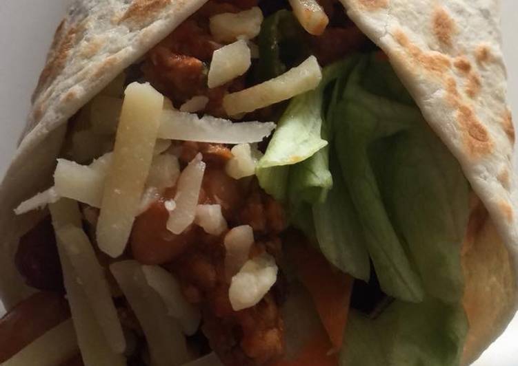 - Heat the tortilla wrap in pan for 10 seconds each side and add some salad, soya filling and cheese. If you have salsa add that too..
